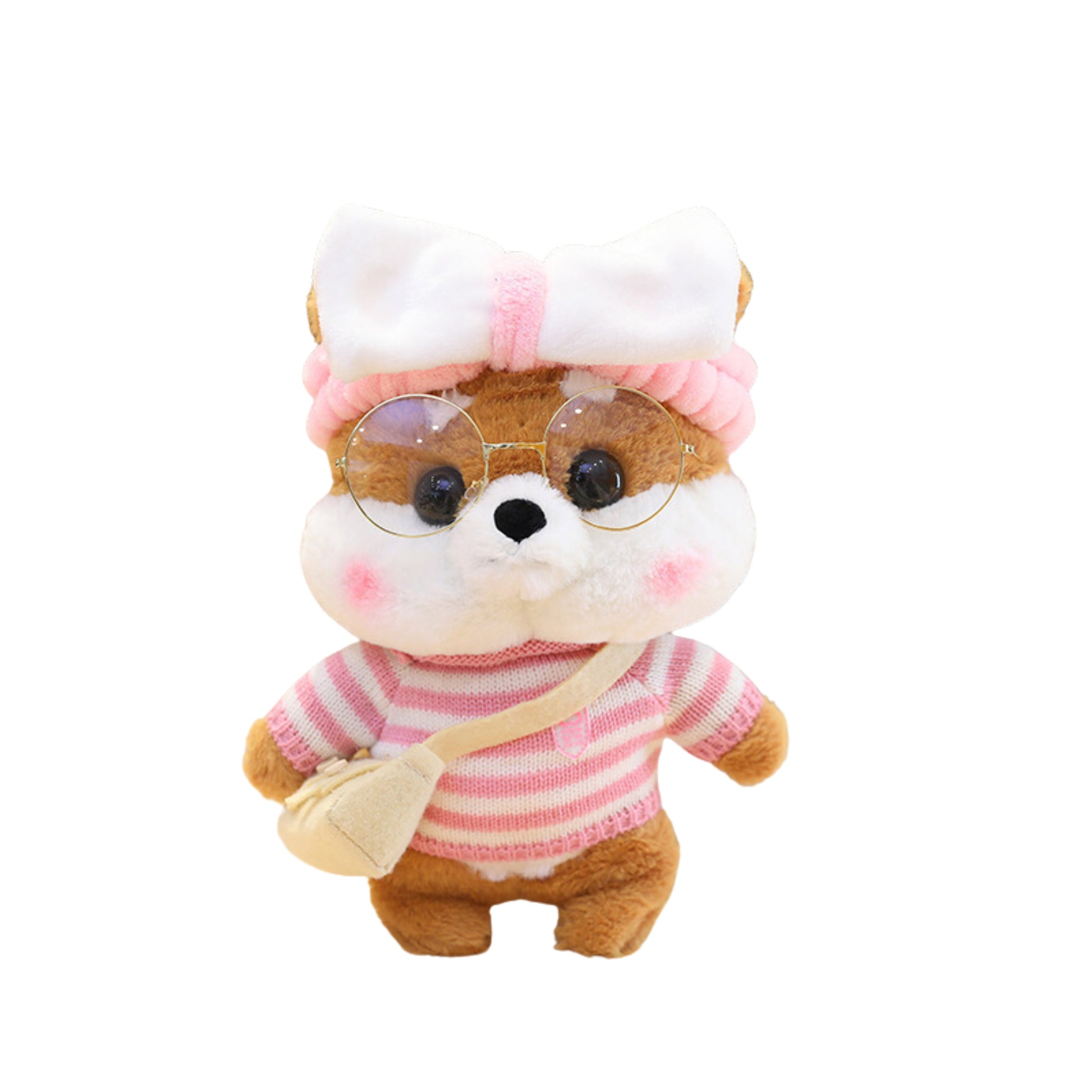 Coco wears a stripey pink jumper, a bow headband, and carries a little white bag. She's full of creativity and kindness, always drawing happy hearts, stars, and rainbows. Her soft style and round glasses make her the perfect cuddle-time companion.